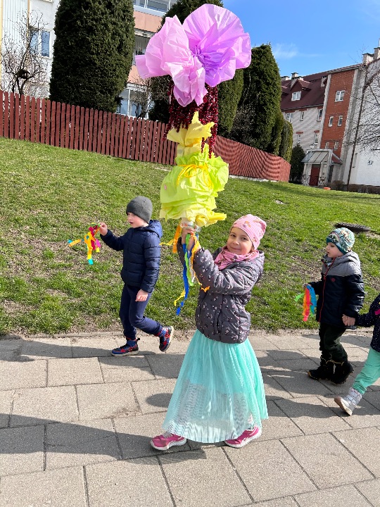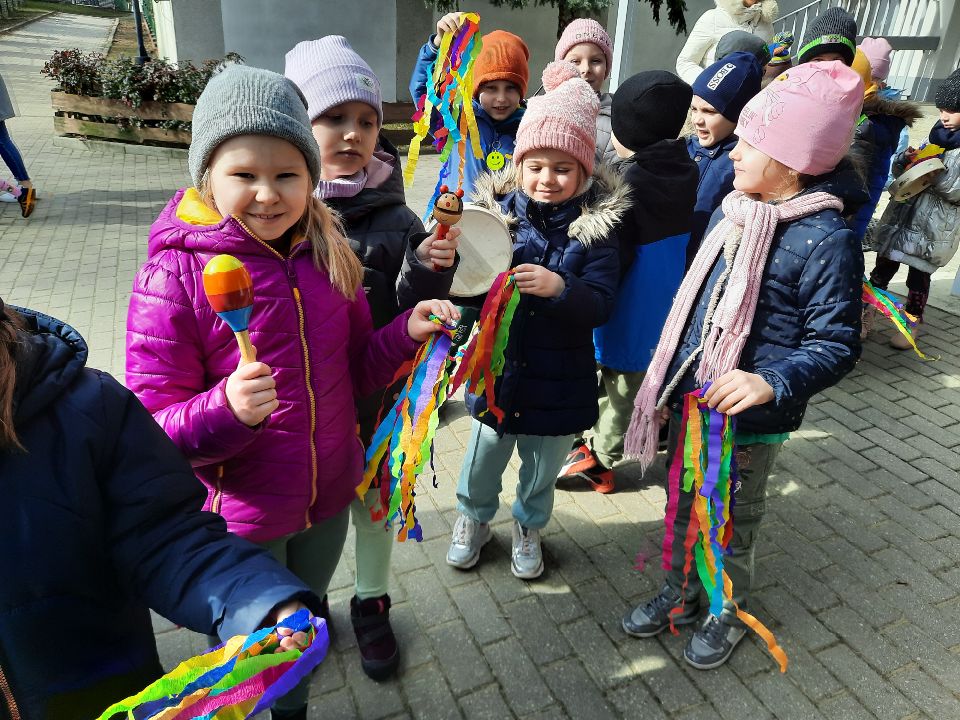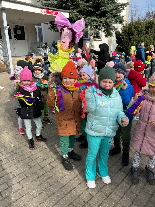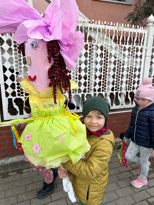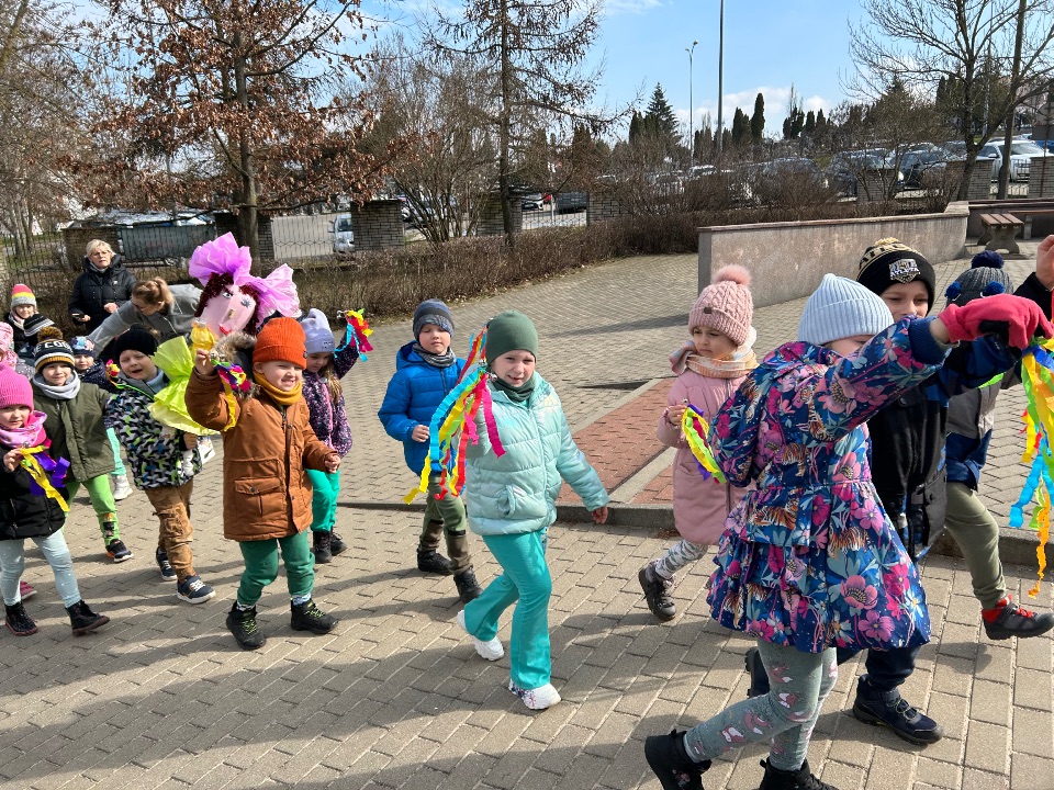 Dziś 21 marca - Pierwszy Dzień Wiosny - wszystkie grupy z naszego przedszkola uroczyście witały Wiosnę. W kolorowym korowodzie z Marzanną na czele przemaszerowaliśmy ulicami osiedla powiewając barwnymi bibułkami i grając na instrumentach. Po drodze przedszkolaki śpiewały piosenki o wiośnie i żegnały zimę. Korowód zakończył się w ogrodzie przedszkolnym gdzie dzieci w ciepłych promieniach wiosennego słońca kontynuowały zabawy.