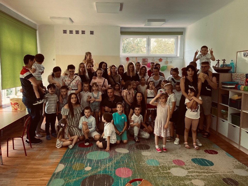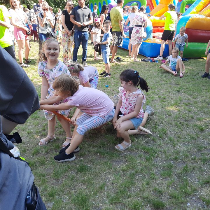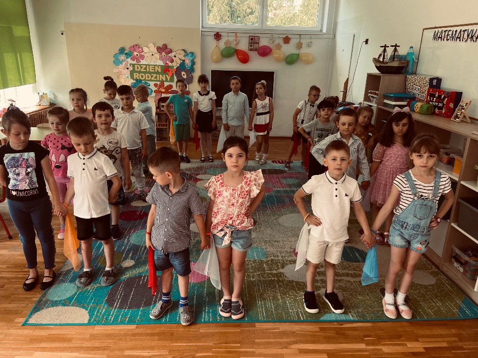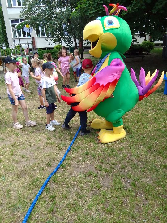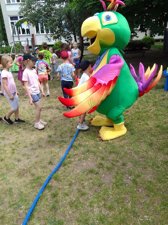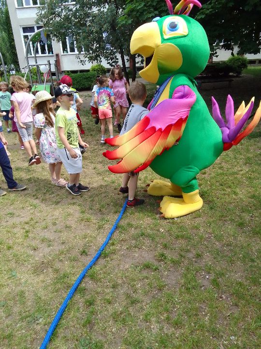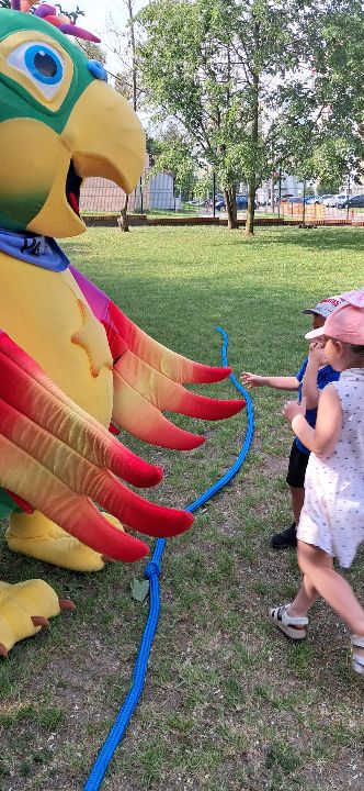 Piątek - 24 maja był to ważny dzień w naszym przedszkolu, ponieważ tego dnia świętowaliśmy Dzień Dziecka oraz Dzień Rodziny. Od rana dzieci z wszystkich grup bawiły się w ogrodzie przedszkolnym z animatorami Paaro. Dużą niespodzianką były odwiedziny i wspólne zabawy z Papugą Paarot. Było wesoło i kolorowo, a na twarzy każdego dziecka malował się piękny uśmiech. Po chwili odpoczynku oczekiwaliśmy na kolejne ważne wydarzenie, czyli uroczystości z okazji Dnia Rodziny. Jest to jedna z ważniejszych uroczystości w kalendarzu imprez naszego przedszkola, bo to właśnie mama i tata są najważniejszymi osobami w życiu naszych małych przedszkolaków. Każda grupa zaprezentowała krótki występ, którym chciała wyrazić swoją ogromną miłość i wdzięczność za trud, poświęcenie i wychowanie swoim kochanym rodzicom. Po występach czekał słodki poczęstunek, a dzieci wręczyły rodzicom własnoręcznie wykonane prezenty, laurki i portrety. Na koniec pani dyrektor zaprosiła wszystkie przedszkolaki wraz z rodzicami na dmuchańce, które już czekały w ogrodzie przedszkolnym. Tego dnia ogród tętnił zabawą i miłością. Z okazji Dnia Rodziny życzymy Państwu jak najwięcej ciepła, wspólnie spędzonego czasu oraz wzajemnej bliskości, zrozumienia i tolerancji.
