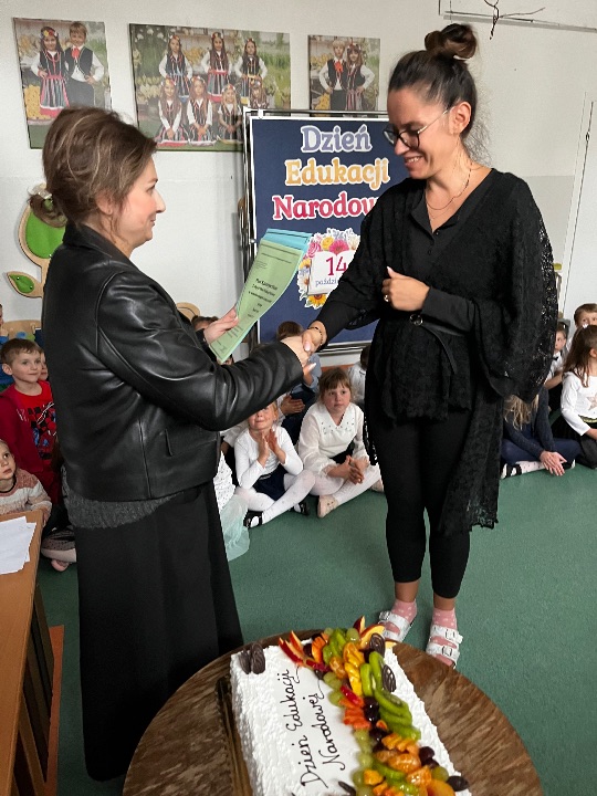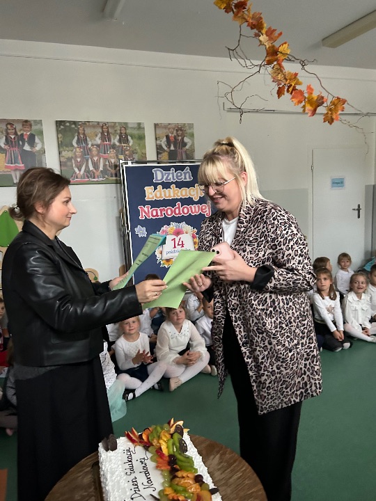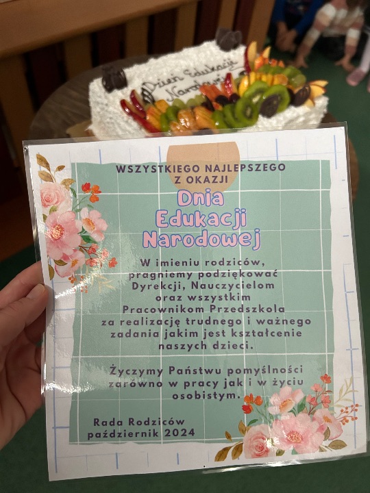 14 października - Dzień Edukacji Narodowej to święto wszystkich pracowników placówek oświatowych. Z tej okazji dzieci z grupy VI  zaprezentowały przygotowaną specjalnie na tę okazję część artystyczną. Słowami piosenek i wierszy podziękowały wszystkim pracownikom przedszkola za codzienną troskę i serce włożone w ich nauczanie i wychowanie. Do dziecięcych życzeń przyłączyła się pani Dyrektor Magdalena Sieprawska, która przekazała pracownikom słodki poczęstunek od Rady Rodziców. Dziękujemy i liczymy na dalsze wsparcie i współpracę.