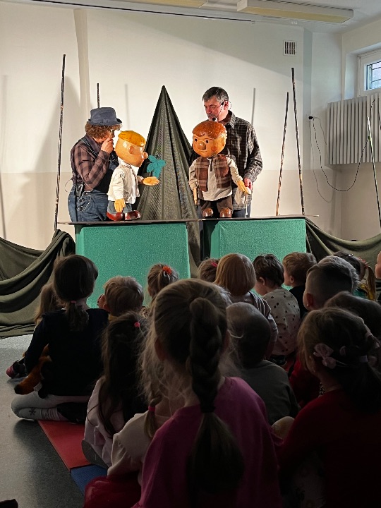 Dzisiaj w naszym przedszkolu gościł lubiany przez nas Teatr CoNieco. Aktorzy opowiedzieli nam bajkę ekologiczną zatytułowaną ,,Ostatnie drzewo". Bajka w ciekawy sposób przedstawiła nam potrzebę troski o przyrodę. Mieszkańcy wioski położonej w lesie, wiedzeni żądzą bogactwa wycinają wszystkie pobliskie drzewa. Dopiero wtedy zauważają, jak źle zrobili. Nadzieję przywraca mały Hubercik, który oddaje wszystkie nasiona, by posadzić nowy las. Była to bardzo pouczająca bajka.