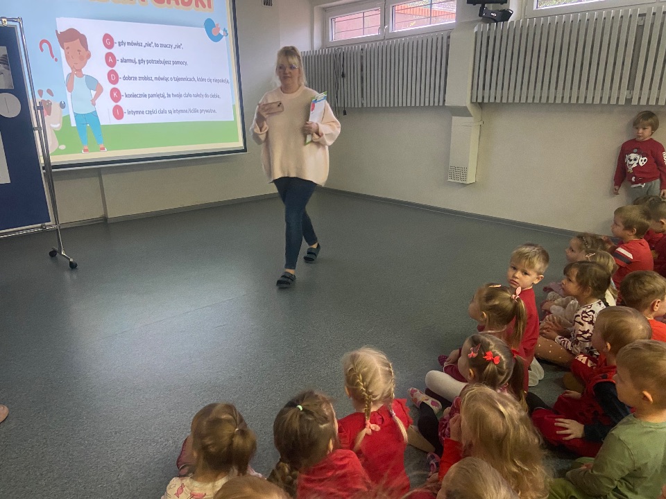 Celem zajęć było wzmocnienie w dziecku przekonania, że ma prawo czuć się bezpiecznie, podniesienie umiejętności identyfikacji sytuacji niebezpiecznych i zagrażających, przekazanie dziecku informacji o konieczności mówienia o zagrażającej sytuacji oraz dostarczenie informacji dotyczących sposobów działania w trudnej sytuacji.