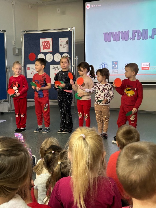 W dniu finału wszystkie przedszkolaki ubrane w barwy kampanii miały okazję uczestniczyć w zajęciach edukacyjnych poprowadzonych przez Panią psycholog Urszulę Perkowską i Panią Natalię Kafarę-Łubko, wychowawcę grupy II.
