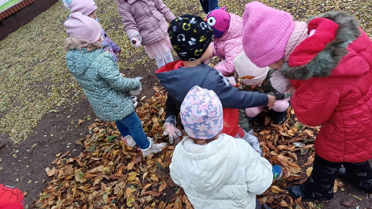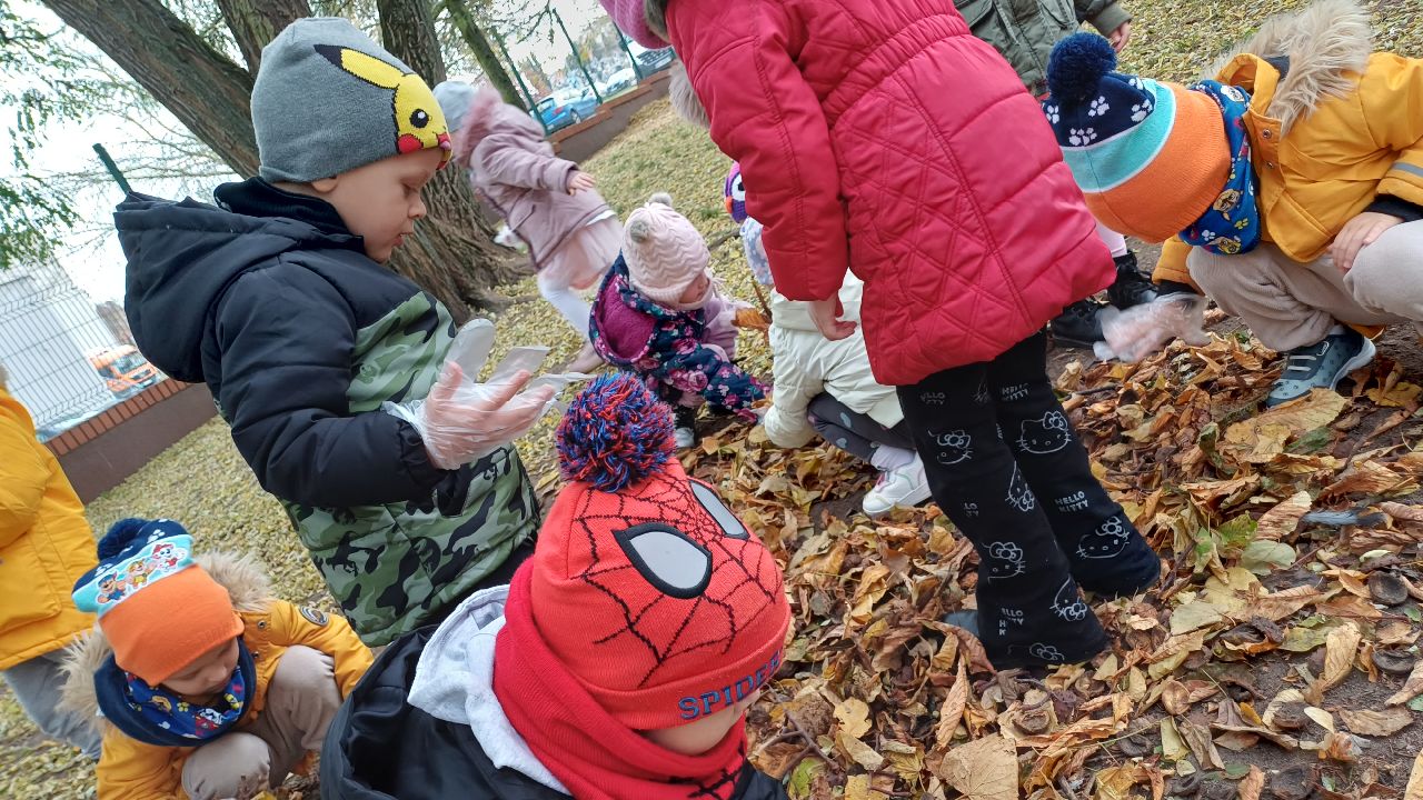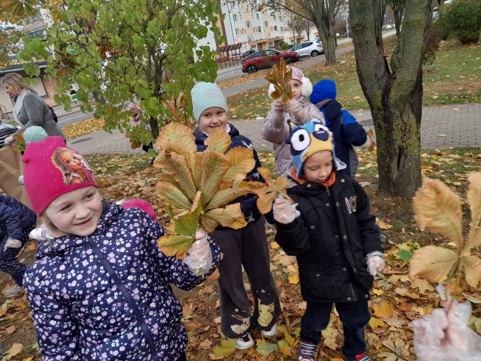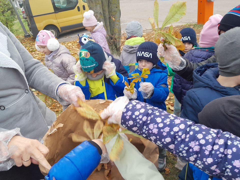 Nasze przedszkole po raz kolejny włączyło się w akcję "Ratujemy białostockie kasztanowce", organizowaną przez Departament Gospodarki Komunalnej Urzędu Miejskiego w Białymstoku. Akcja polega na systematycznym uprzątaniu opadających liści kasztanowców, wewnątrz których zimują osłonięte kokonem poczwarki szrotówka kasztanowcowiaczka.