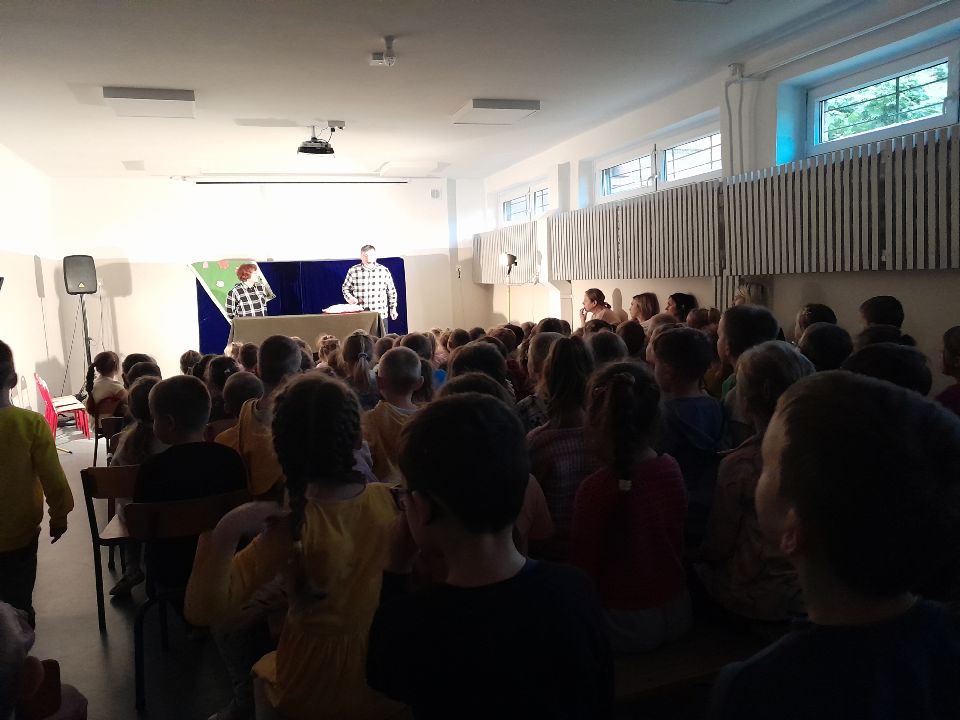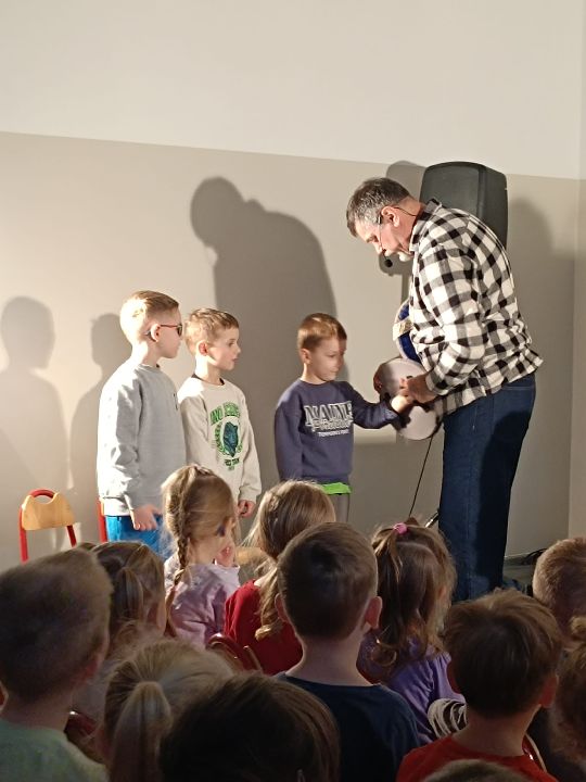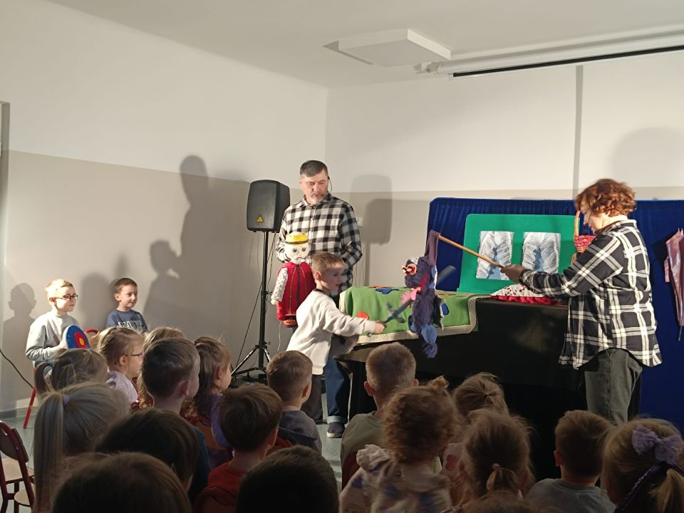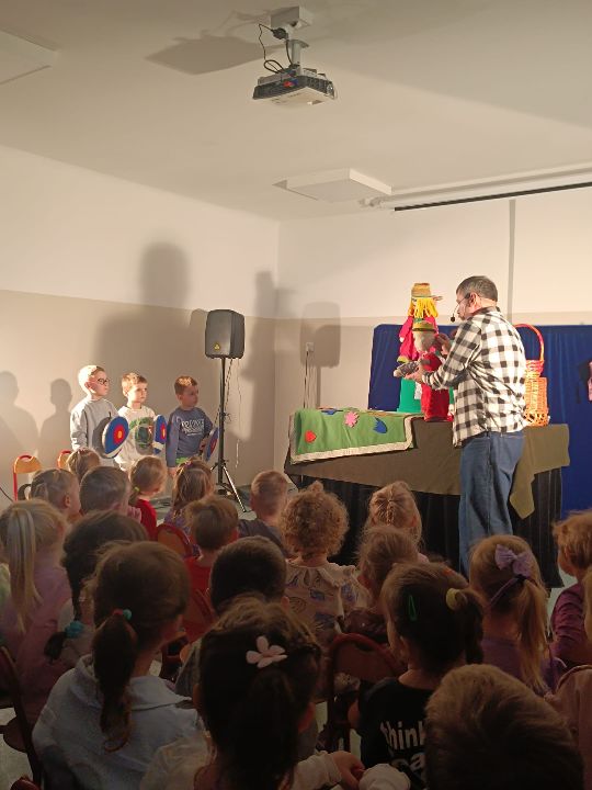 21 listopada dzieci z Naszego Przedszkola uczestniczyły w interaktywnym spektaklu przygotowanym przez Teatr CoNieco z Białegostoku, w którym sprytna księżniczka Anka- Jagodzianka pokonuje smoka Zakalca, ucząc go dobrych nawyków, w tym zdrowego odżywiania. Spektakl propaguje odwagę i pomysłowość, a dzieci z publiczności odgrywały w nim role dam i rycerzy.