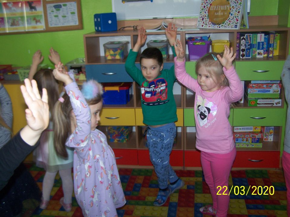 Dnia 22 marca obchodzony jest Światowy Dzień Wody. Ubrane na niebiesko przedszkolaki z grupy V również przyłączyły się do świętowania. Określały właściwości wody min. zapach, kolor, porównywały objętość wody w zależności od naczynia, w którym się znajduje woda. Ustaliły, że należy wodę oszczędzać i podały w jaki sposób powinniśmy to robić w domu. Plansza zobrazowała w jaki sposób woda krąży w przyrodzie, a film edukacyjny „Woda wokół nas” pokazał ile wody jest na Ziemi, a ile w ciele człowieka, jak woda trafia do naszych domów i co dzieje się ze ściekami. Oczywiście do wykonania była też karta pracy.