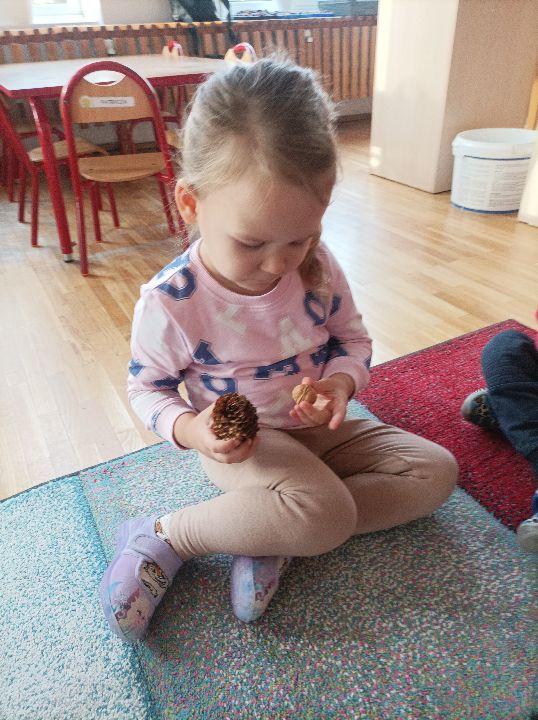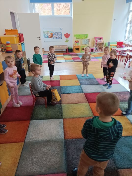 Jednym z zadań projektu edukacyjnego „Sensosmyki” jest ścieżka sensoryczna z jesiennych materiałów przyrodniczych. Dzieci, które przechodzą przez ścieżkę bosymi stopami lub dotykają dłońmi jej poszczególnych elementów ćwiczą sprawność motoryczną, równowagę, koordynację ruchową, percepcję wzrokową oraz planowanie ruchu. Naszym maluchom poszło świetnie, każdy podjął się wyzwania.