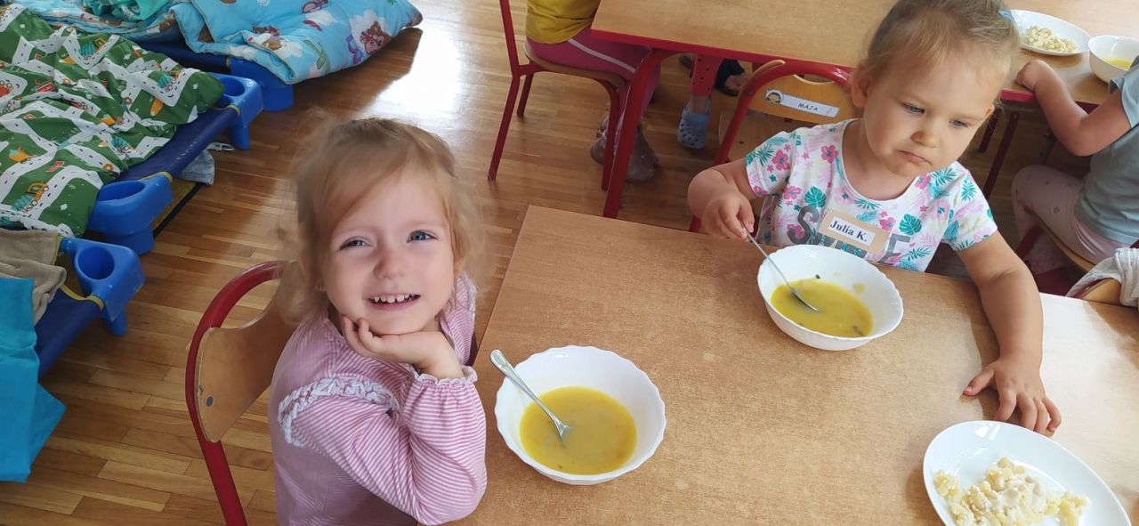 Nasze maluszki już od pierwszych dni w przedszkolu aktywnie spędzają czas w sali, jak i na przedszkolnym placu zabaw. Uczymy się wspólnie bawić, dzielić zabawkami i bezpiecznie korzystać ze sprzętów dostępnych na podwórku.