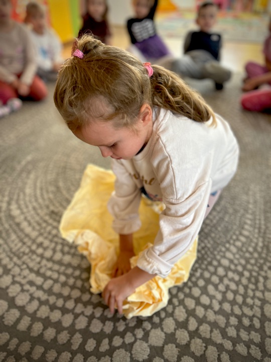 Dzieci wraz z rodzicami wykonały jesienną pracę plastyczną, rozwijając swoją kreatywność i zdolności manualne. Nie zabrakło również zabaw muzyczno-rytmicznych, które wywołały wiele uśmiechów i pozytywnych emocji.