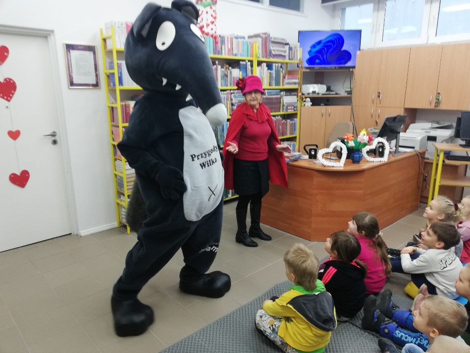 W piątek (17 lutego) wraz z grupą III wybraliśmy się do szkolnej biblioteki na„ Walentynkowe spotkanie z książką”, Czekał tam na nas Czerwony Kapturek i Wilk. Drugiego takiego wilka ze świecą szukać. Był na Marsie i w amazońskiej dżungli, grywa w piłkę i piecze szarlotkę. Pani Bibliotekarka przeczytała nam książeczkę o jednej z Jego przygód. O tym, że ten Wilk był bardzo samotny. Dzięki radom przyjaciół i naszych przedszkolaków postanowił odmienić swoje życie i znaleźć wybrankę serca. Ta książeczka dała nam do myślenia. Zrozumieliśmy, że nie wygląd jest najważniejszy, bo miłość odnajdzie nas w odpowiednim momencie. Dziękujemy Paniom Bibliotekarkom za miłe spotkanie, tańce, lizaki i umożliwienie zwiedzenia czytelni.❤️