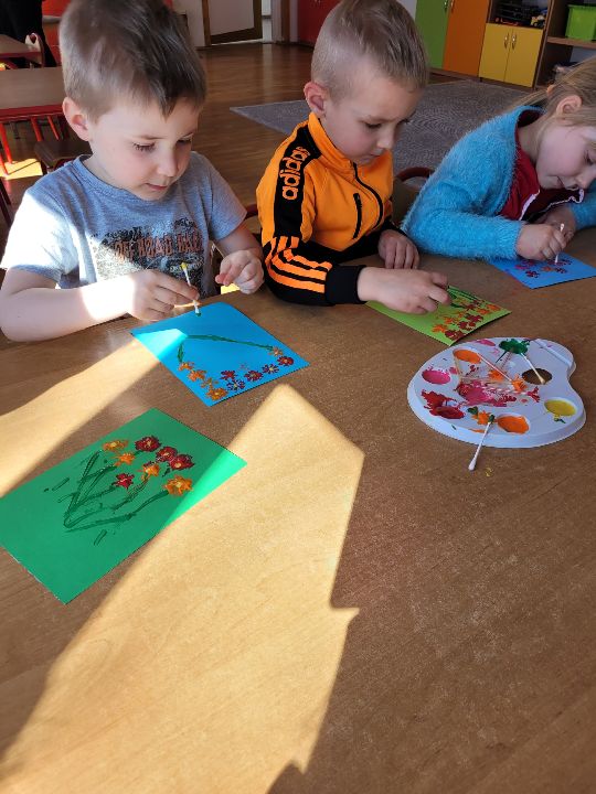 Malować można wszystkim: pędzlem, palcem, pastelą itd. my natomiast malowaliśmy słomką i patyczkami higienicznymi, to wcale nie jest trudne.