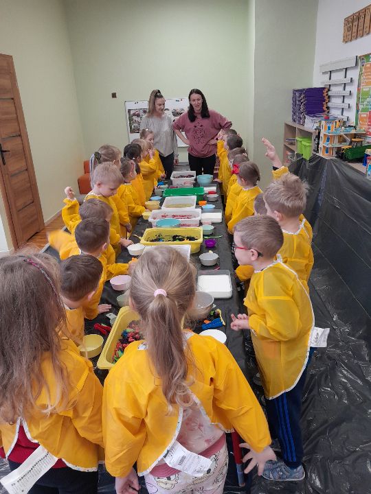 Zgodnie z tematyką tygodnia na dzisiejszych zajęciach dzieci zapoznały się z piramidą zdrowego odżywiania i aktywności fizycznej. Rozmawialiśmy na temat zdrowego stylu życia i wykonaliśmy syrop z cebuli, który uważany jest za naturalny antybiotyk. Działa bakteriobójczo, jest skuteczny w zwalczaniu stanów zapalnych oraz podrażnień gardła i chrypki.