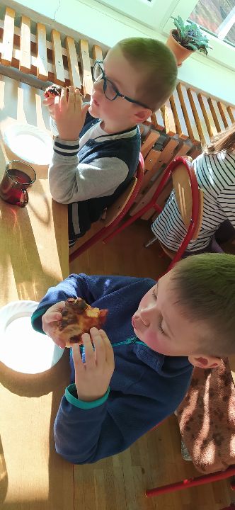 Pizza jest jedną z najpopularniejszych potraw na świecie. Uwielbiają ją dzieci, jak i dorośli. W dniu dzisiejszym w naszej grupie obchodziliśmy Międzynarodowy Dzień Pizzy. Podczas zajęć dzieci poznały krótką historię pizzy oraz dowiedziały się, z jakiego kraju pochodzi, a także wymieniały swoje ulubione składniki z pizzy. Przedszkolaki stworzyły także kolorowe, smakowicie wyglądające placki. A punktem kulminacyjnym była pyszna pizza przygotowana przez nasze Panie z kuchni.