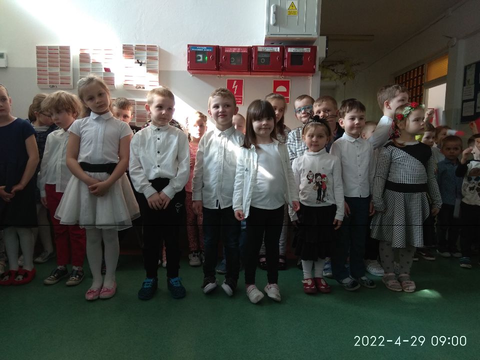W związku ze zbliżającym się świętem przypomnieliśmy symbole narodowe Polski: flaga, godło, hymn państwowy. Poznaliśmy mapę Polski i jej główne regiony: góry - Tatry, Morze Bałtyckie. Zaznaczaliśmy na mapie stolicę Polski - Warszawę oraz nasze rodzinne miasto - Białystok. Dzieci kolorowały herb Warszawy - Syrenkę oraz herb naszego miasta. Wyszukiwały wśród ilustracji główne zabytki Warszawy. W kartach pracy kolorowały flagę Unii Europejskiej oraz kraje należące do Unii. Wykonaliśmy pracę plastyczną - mapa Polski. Utrwaliliśmy wiersze: