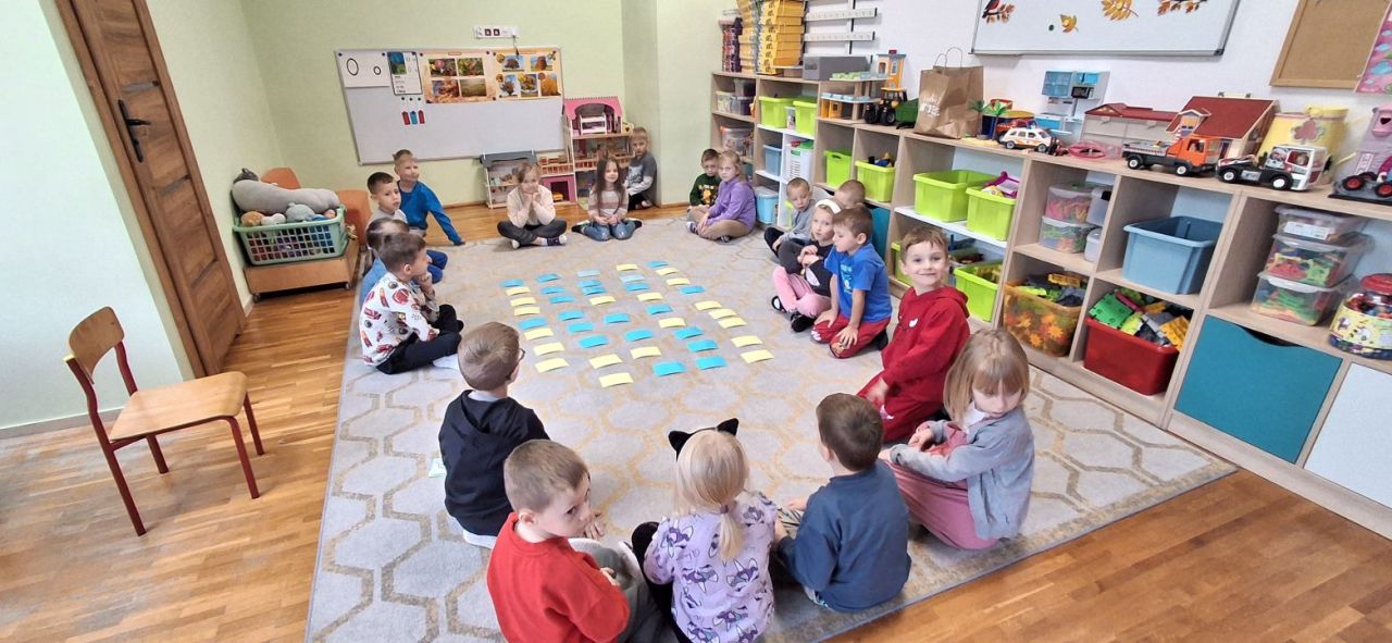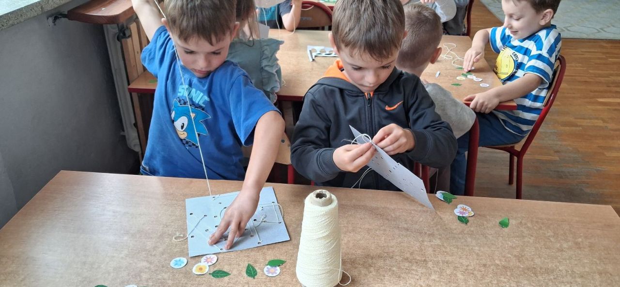 Jesień i babie lato zawitało również do grupy VI. Nasze przedszkolaki ćwiczyły ostatnio przewlekanie niteczek i stworzyły w ten sposób małe pajęczynki.