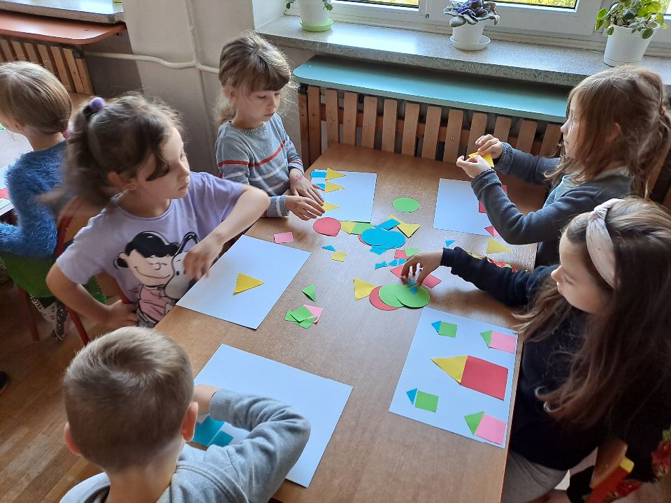 Dziś sześciolatki pilnie brały udział w zajęciach poświęconych dopasowywaniu figur geometrycznych. Utrwaliliśmy sobie podstawow kształty figur i tym samym zralizowaliśmy kolejny punkt projektu „Inkubator edukacji- edukacja matematyczna”