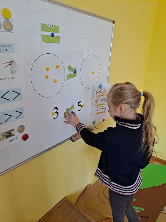 Grupa VI melduje zrealizowanie kolejnego zadania z projektu „Inkubator edukacji - edukacja matematyczna”. Zadanie to przybliżyło nam pojęcie znaków matematycznych <; >; =, nabyliśmy umiejętności porównywania liczebności zbiorów.