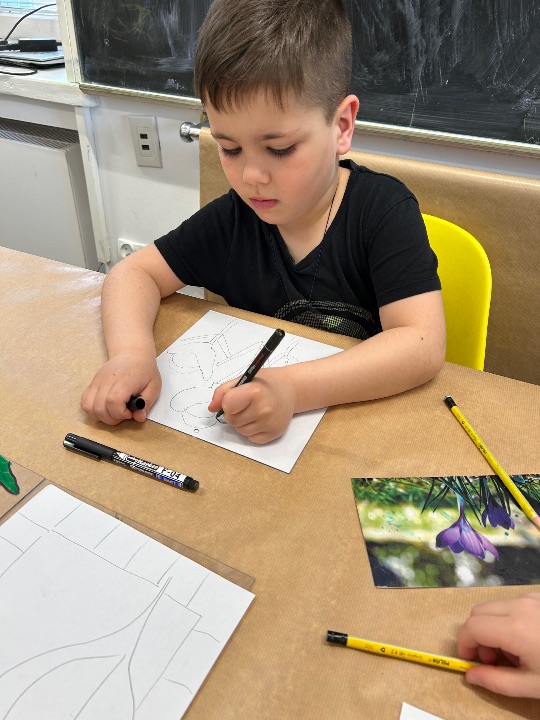 Dzieci miały okazję uczestniczyć w niezwykle ciekawych warsztatach pt. „Zabawy w przezroczyste” podczas których poznały nową technikę plastyczną. Zaproponowana praca przebiegała w kilku etapach. Najpierw dzieci naszkicowały ołówkiem krokusy, następnie odrysowały je markerem na płytce pleksi, żeby ostatecznie móc pokolorować je mazakami. Na tym nie koniec, bo żeby obrazek zachwycił wszystkich oglądających trzeba było wykonać tło, które powstało z kolorowych kartoników ozdobionych kółeczkami różnej wielkości. Efekt końcowy przeszedł najśmielsze oczekiwania. Dzieci podziwiały swoje prace i dzieliły się spostrzeżeniami. Każdy wyszedł z pracowni zadowolony i pełen zapału do dalszych artystycznych poszukiwań.